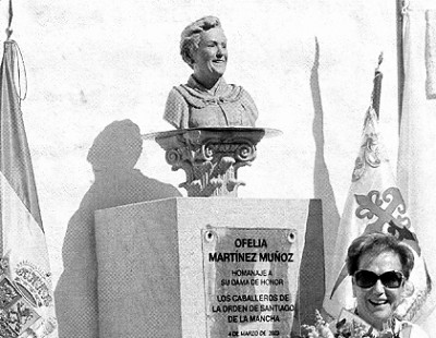 Ofelia fue alcaldesa de Los Hinojosos. Vivió en una Casa-Museo, que se comunicaba con la Iglesia. Mujer de gran vitalidad, humor y energía, vivió una vida intensa. Le encantaba Quintanar de la Orden, villa a la que venía casi todos los días. Fue elegida Dama de Honor por los Caballeros de La Orden de Santiago. En marzo de 2013 se le ofreció un gran Homenaje, colocando un monumento en la fachada aliado de la Iglesia. Tuve gran amistad con ella y visité 5 veces su Casa-museo, que perteneció al final de la Edad Media a los Caballeros de Santiago. He sentido mucho su muerte el pasado 15 de febrero, cuando yo estaba en los Carnavales de Tenerife Descansa en paz amiga Ofelia, muchas gracias por tu amistad. Te imagino al lado de nuestro amigo Antonio Barrajón.