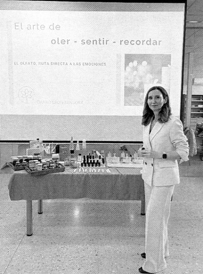 Una amena y didáctica cata de aceites esenciales y materias primas, donde se conoció el sentido del olfato, la generación de la memoria olfativa, breve historia del perfume desde la Edad de Piedra hasta la actualidad pasando por los egipcios, griegos, romanos…; con anécdotas de Tutankamón, Cleopatra, Afrodita y el Botafumeiro por su relación con el perfume.