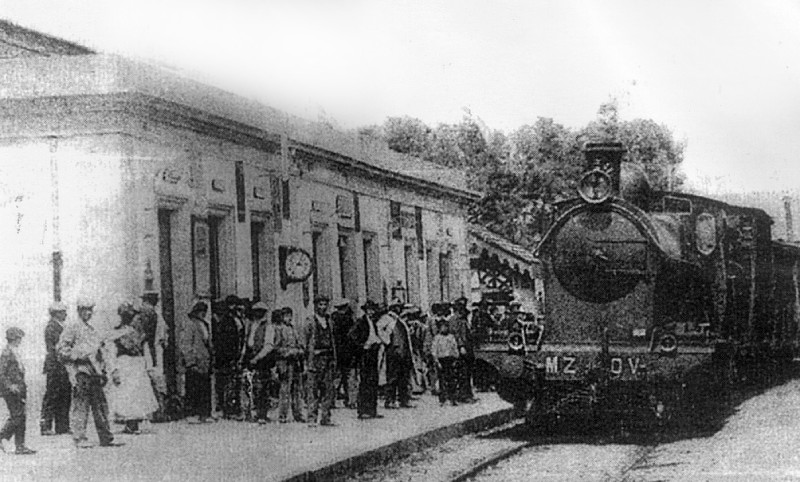 Nuestra socia, la gran pintora Carmen Nieto Martín de Nicolás, Vda. de Sepúlveda, nos cede estas fotos» añejas». La primera es nuestra recordada estación del tren, el 24 de junio de 1907, con mucho público esperando el ferrocarril de la línea de 25 Kms. Quintanar-Villacañas, que se inauguró oficialmente el 1 de enero de 1909. La locomotora es el clásico modelo de entonces MZ-OV. En 1997 este tramo se convirtió en una «vía verde».